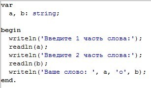 Написать программу, составляющую сложное слово из двух частей и соединительной гласной "о"