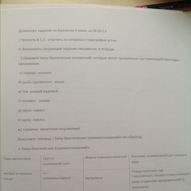 Назовите типы биотических отношений,которые могут проявляться при взаимодействии пары организмов: