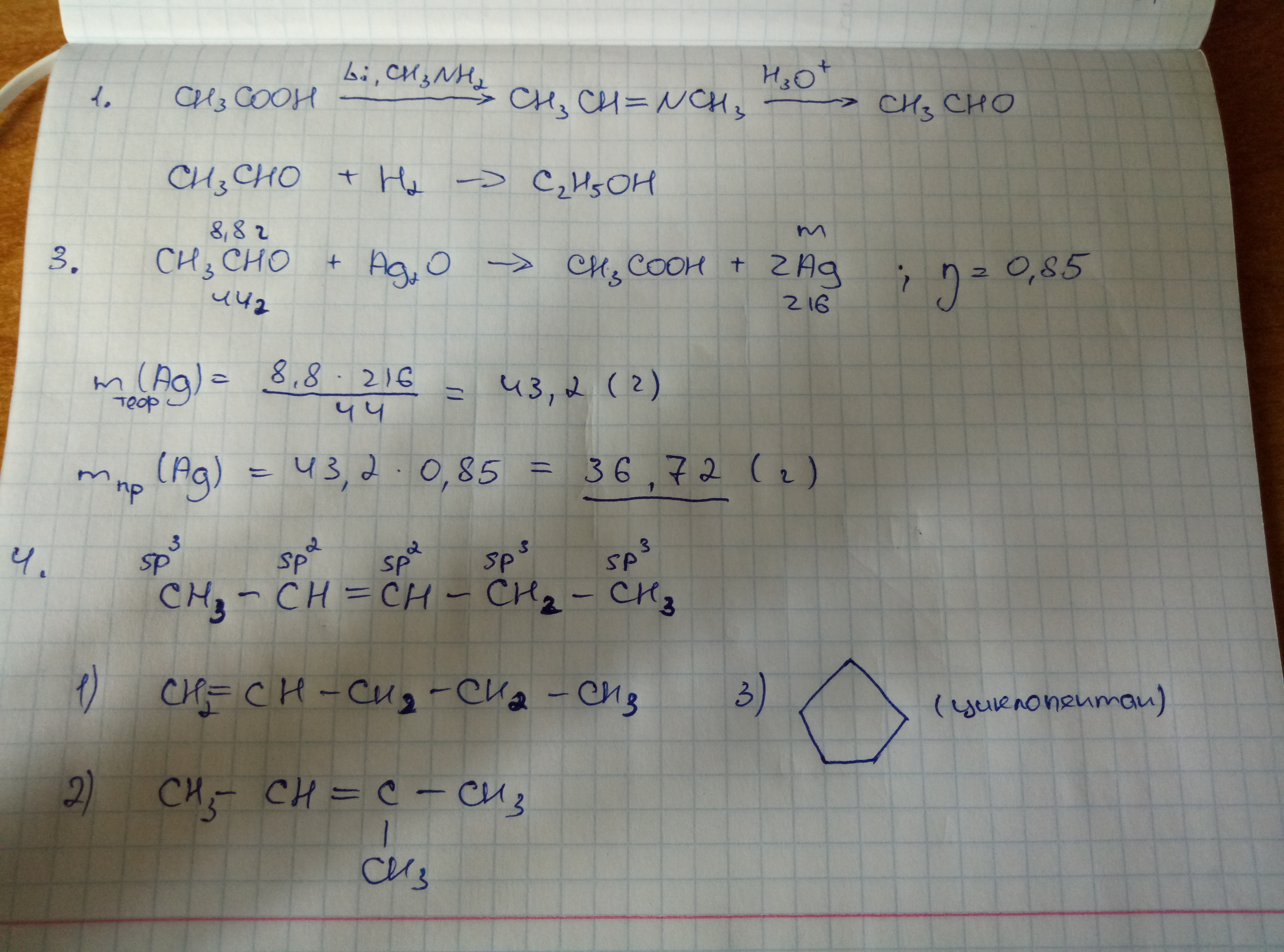 1) Осуществите превращения: уксусная кислота-уксусный альдегид-этиловый спирт