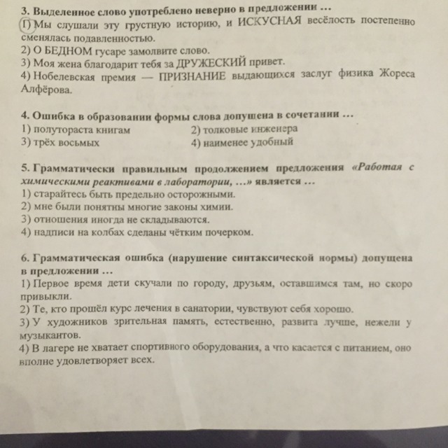 3)-1 не искусная, а искусственная. 4) 2. Не инженера, а инженеры. 5) 1 (объект и субъект должны совпалать) 6)-4 (а что касается питания)