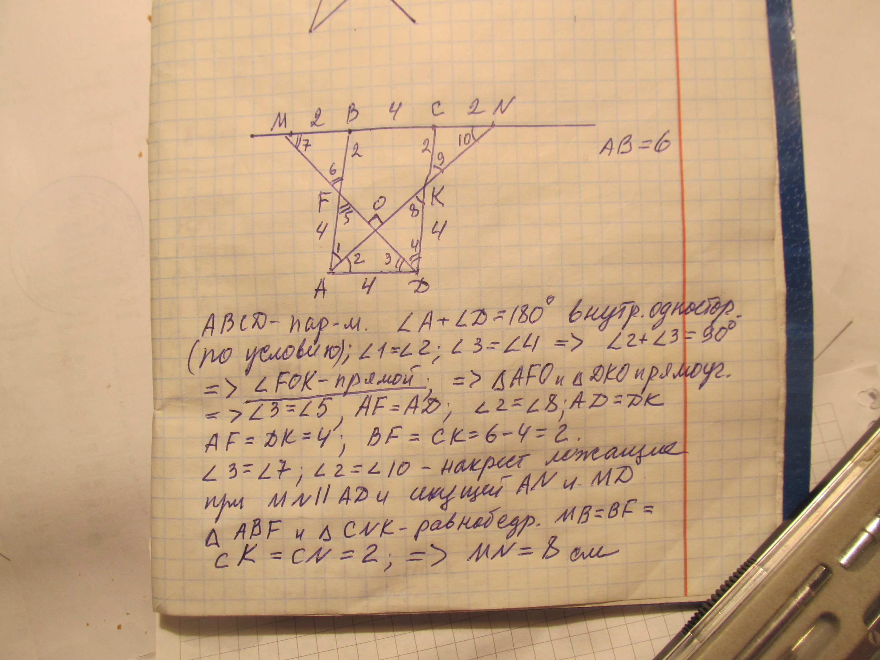 <ADM=<CDM,DM биссектриса и <DMD=<ADM накрест лежащие.Значит <BMD=<CDM, следовательно ΔCDM равнобедренный и MC=CD=6см
