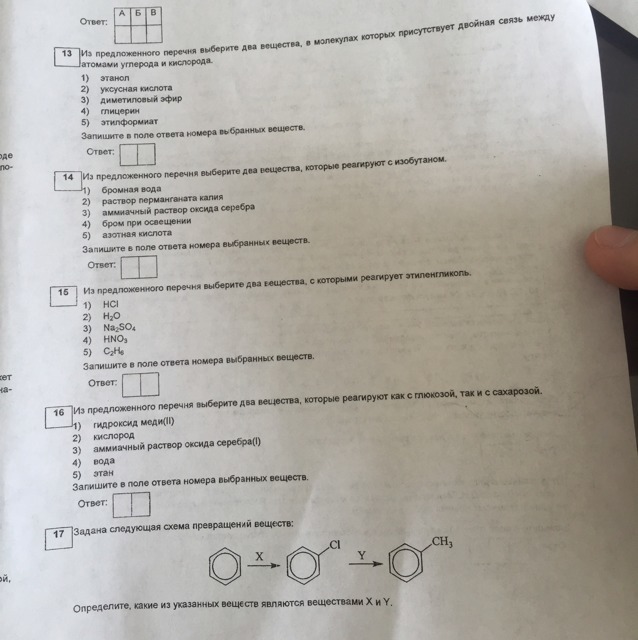 13) 2,5; 14) 4,5; 15) 1,4 16) 1,2 17) Х- Cl2