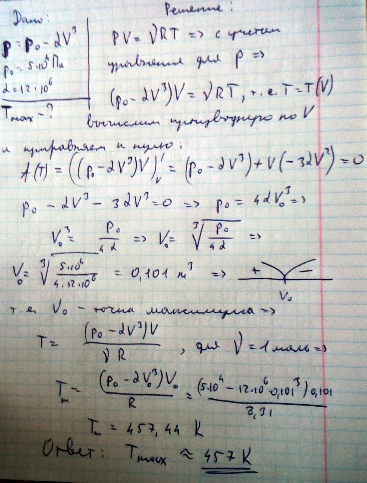 p₀= 50 кПа, α = 12 МПа·моль³·м⁻⁹, V – объем одного моля газа. Найти