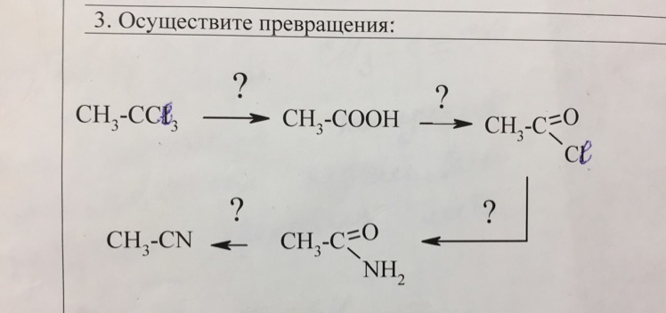 CH3-CCl3 + H2O → [CH3-C(OH)3] → CH3-COOH + HCl