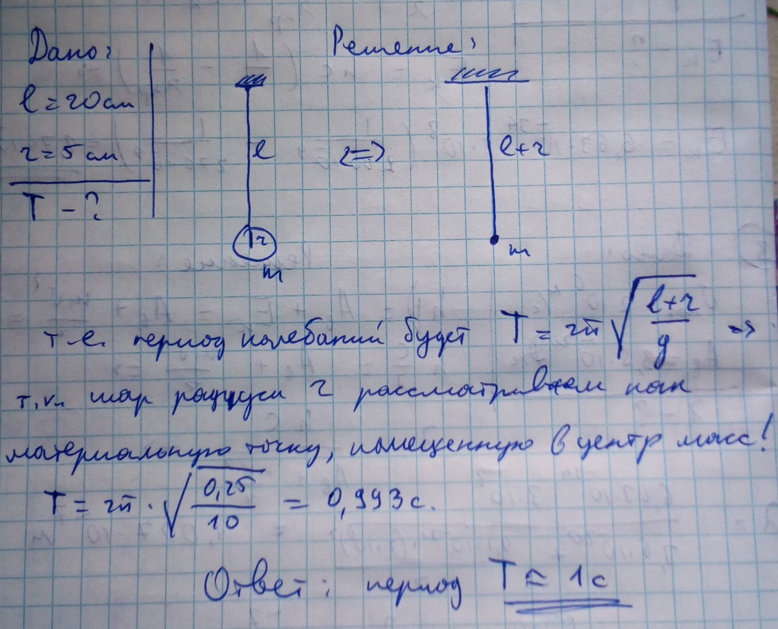 к нити длиной 20см подвесили металлический шарик радиусом 5 см. определить период колебаний получившегося маятника.