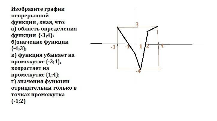 в) функция убывает на промежутке {-3;1}, возрастает на промежутке {1;4};