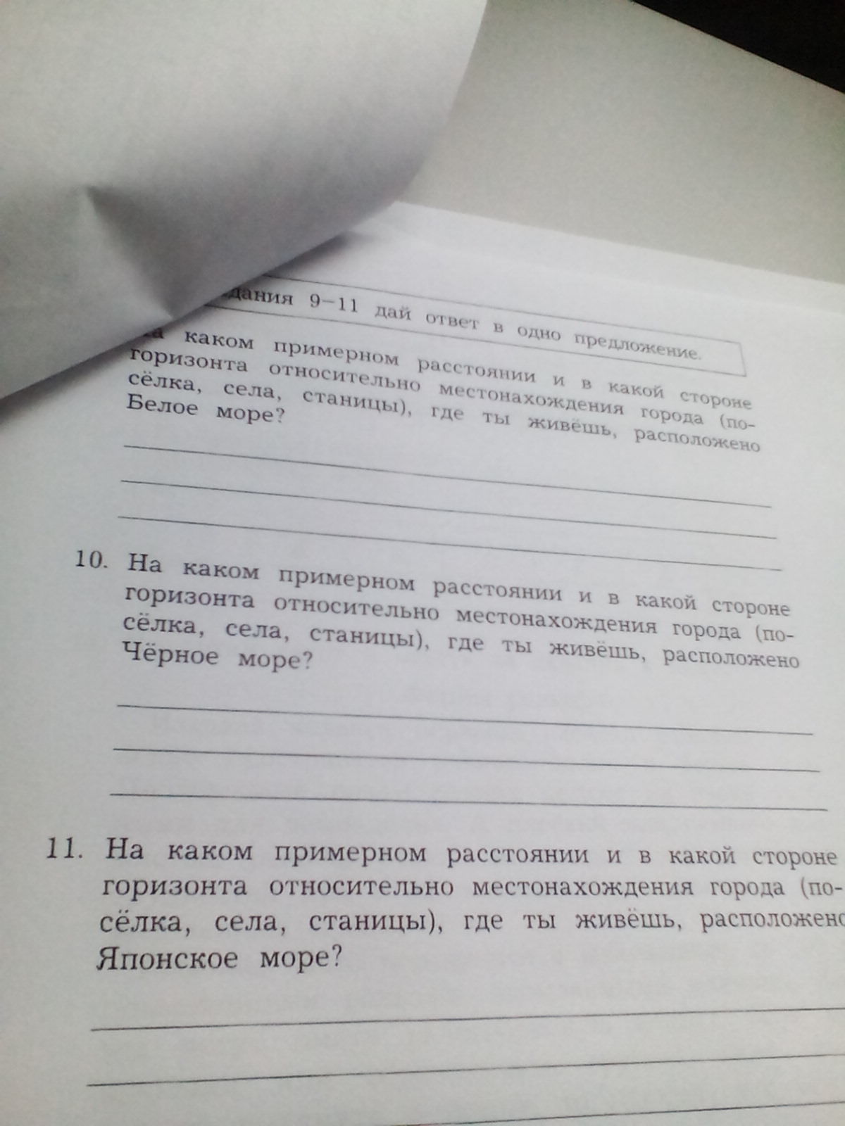 Вообще, это индивидуальное задание. Вы должны только написать, какое расстояние от вашего города (деревни, поселка) до указанного в задании моря. И указать сторону, относительно вашего местоположения