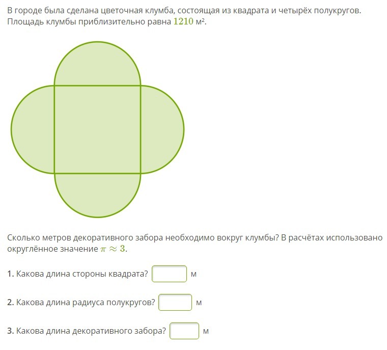 Данная фигура состоит из квадрата и 4-ёх полукругов, которые складываются в два круга.