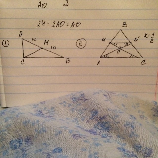 2)Точки М и N явл.,середина сторон АВ и ВС треугольника АВС соответственно. Отрезки АN и CM пересекаются в точке О, АN=12,CM=18.Найдите АО