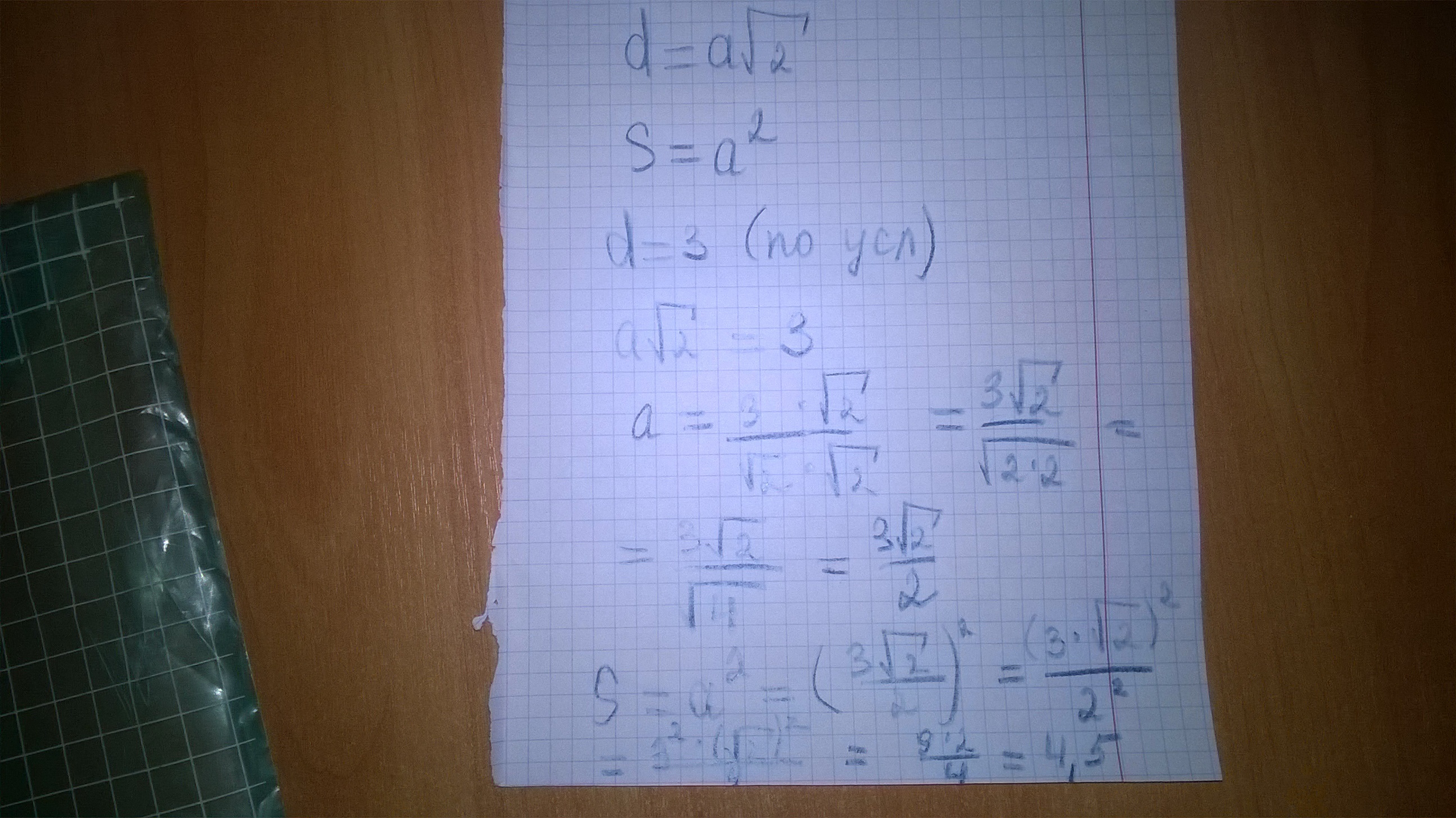 S=a²=((3√2)/2)²=(9*2)/4=9/2=4,5