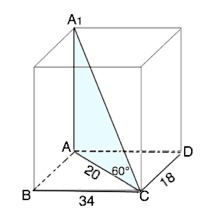 В прямом параллелепипеде стороны оснований 34 и 18 Меньшая диагональ основания 20.меньшая диагональ параллелепипеда образует с плоскостью основания угол 60 градусов .вычислить объем параллелепипеда