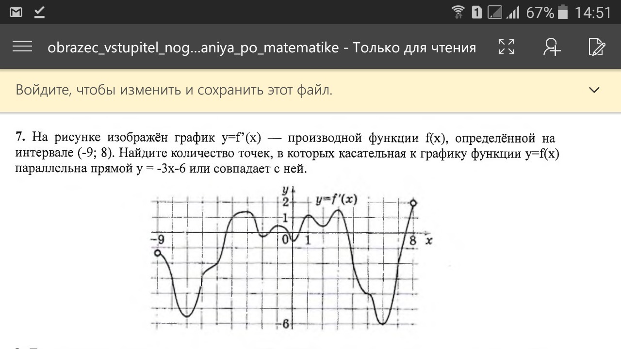 по рисунку касательная принимает значения = -3 в 4-х точках