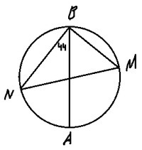 На окружности по разные стороны от диаметра АВ взяты точки М и N.Известно,что угол NBA=44 градуса.Найдите угол NMB.Ответ дайте в градусах