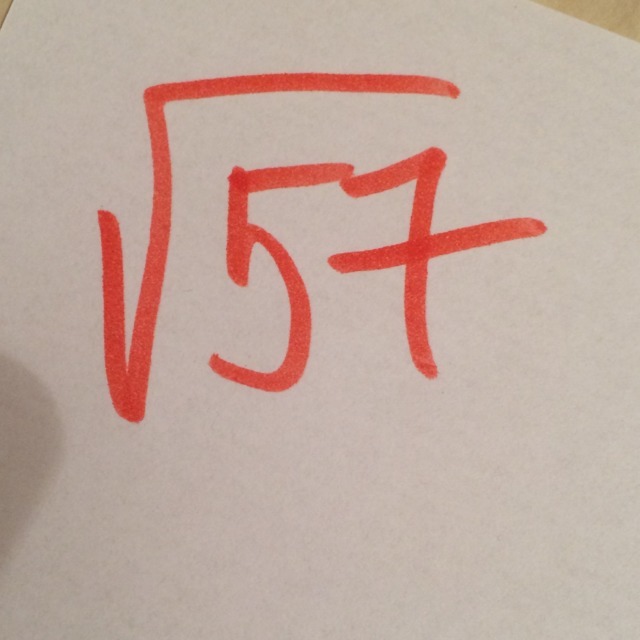После корня57 идёт корень64,так как корень64=8-целое число,