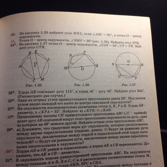Угол UST равен 25 градусов и является вписанным в окружность. Этот угол опирается на дугу UT, как и угол URT/ Следовательно угол UST равен углу URT и равен 25 градусов. А т.к по условию сказано, что UT равно RT следует, что треугольник URT равнобедренный и что угол URT равен RUT и равен 25 градусов. Следовательно угол UTR равен 180- 50= 130