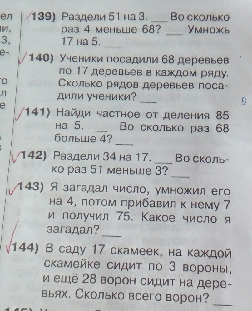 139) 51:3=17. 68:4=17 в 17 раз. 17*5=85