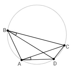 Вокруг четырехугольника ABCD можно описать окружность. Найдите угол CAD, если ∠ABC=50 и ∠ABD=33. подробный ответ