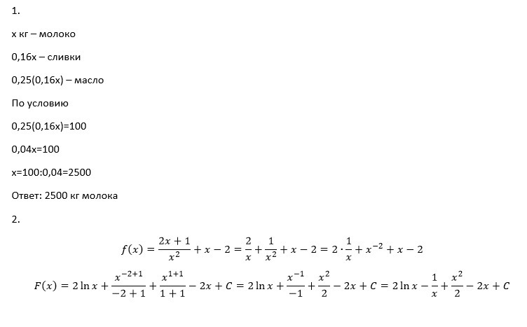 1 Из молока получают 16% сливок, а из сливок 25% сливочного масла. Сколько кг молока потребуется для получения 100кг сливочного масла