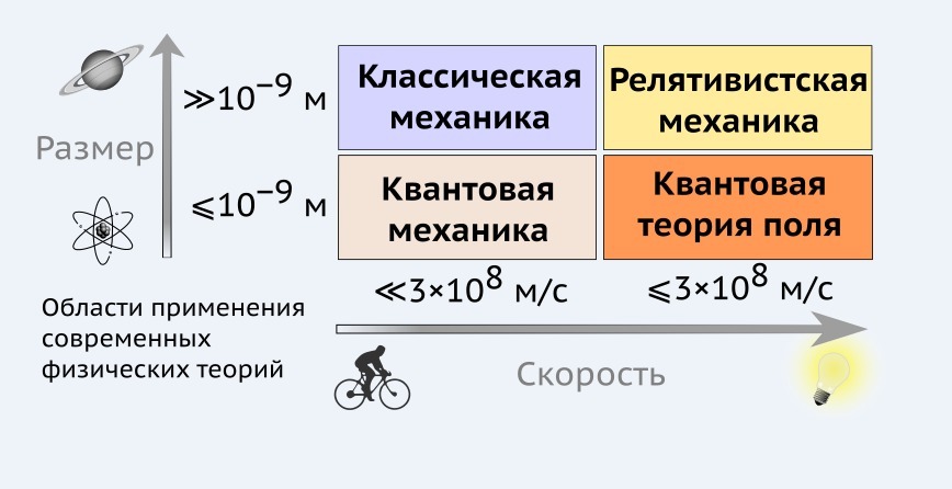 Место классической механики в системе физических наук и границы её применимости показаны на рисунке 1 и 2
