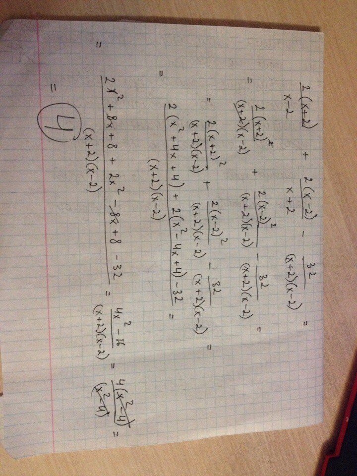 2(х+2)/(х-2)+2(х-2)/(х+2)-32/(х-2)(х+2)=
