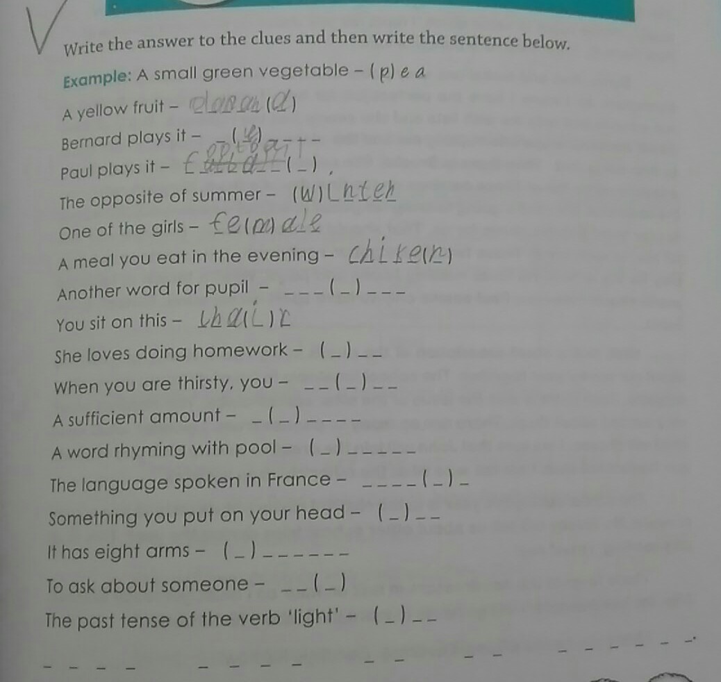 she loves doing homework - имя начинается на S