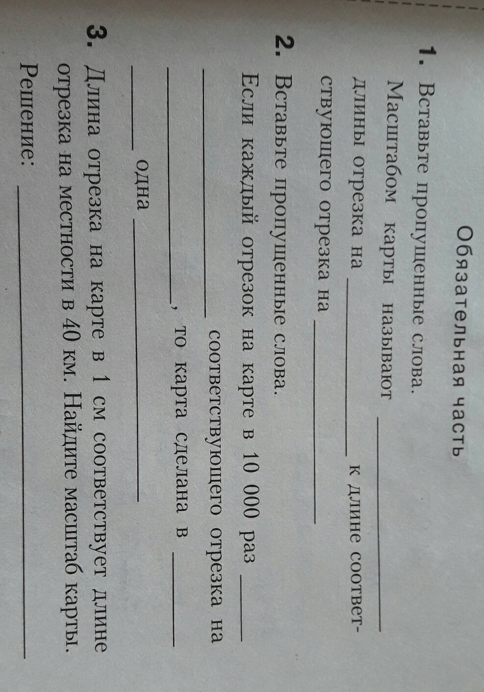 2.Если каждый отрезок на карте в 10 000 раз уменьшить до соответствующего отрезка на карте ,то карта сделана в масштабе одна десятитысячная