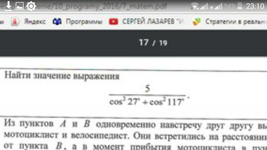 cos²27°+cos²117°=cos²27°+cos²(90°+27°)=cos²27°+sin²27°=1
