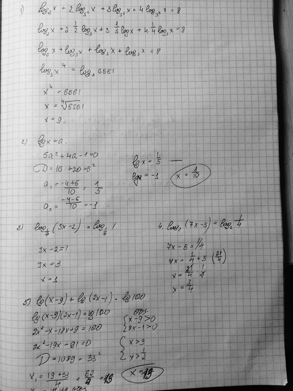 Во 2) 10^(1/5)>0, это удовлетворит ОДЗ х>0