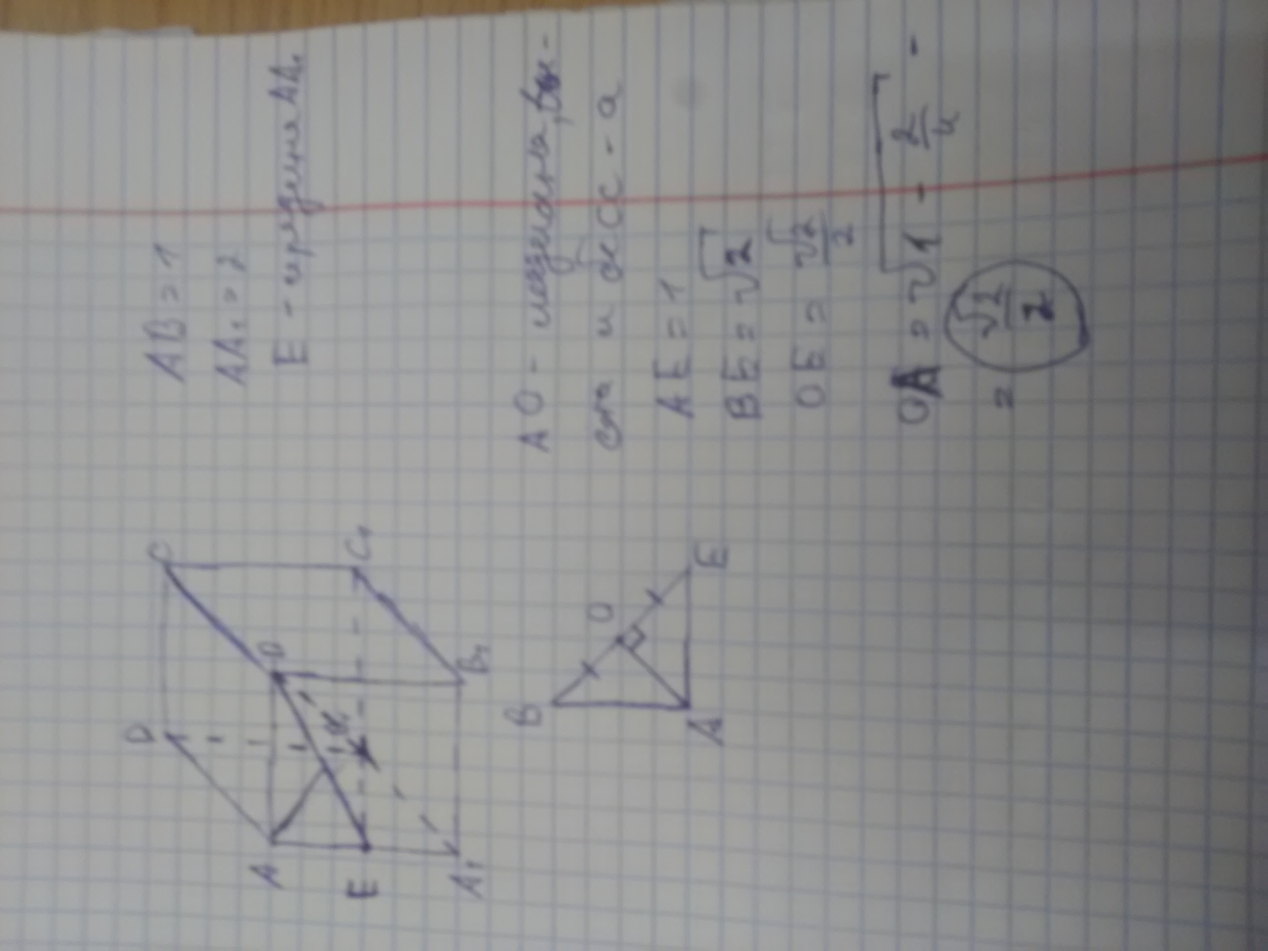 В правильной четырехугольной призме ABCDA1B1C1D1 стороны основания равны 1, боковые ребра равны 2. Точка E - середина ребра AA1. Найдите расстояние от вершины A до плоскости BED1.