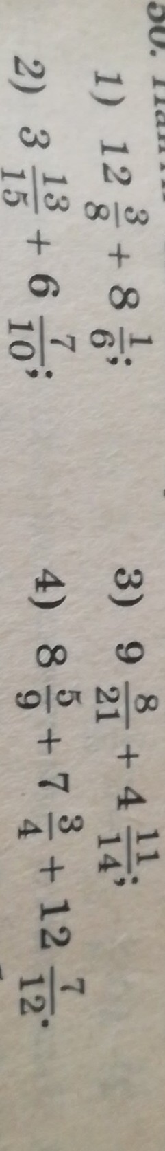 1)12 9/24 + 8 4/24+20 13/24=2+3 26/30 + 6 2)1/30 9 47/30 10 17/30 3 9 16/42 + 4 33/42 1