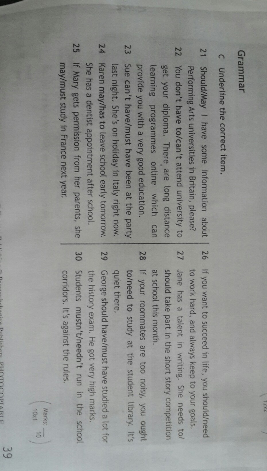 21may 22don't have to 23can't have 24 has to 25 may 26need 27should 28ought to 29must have 30 mustn't