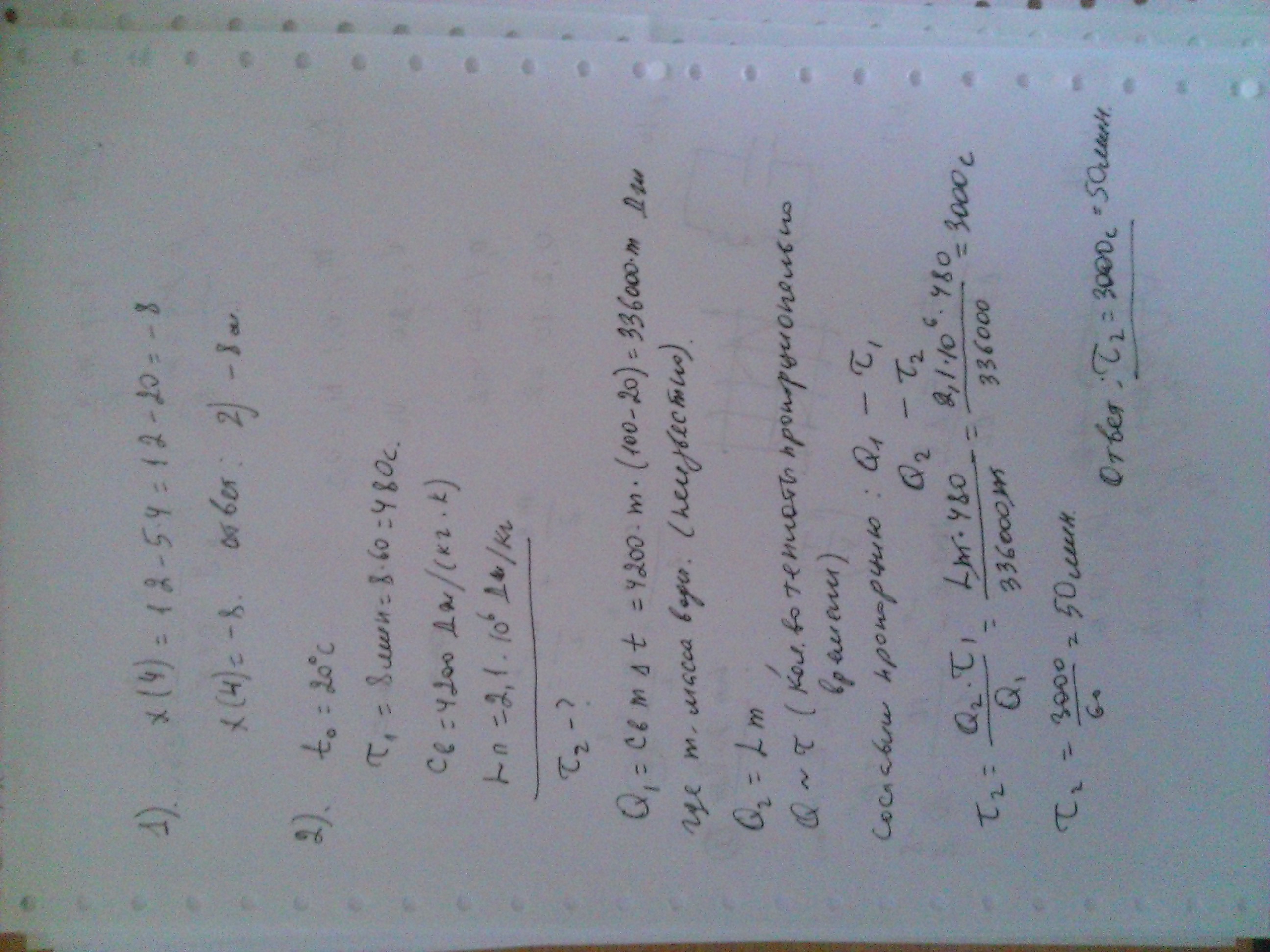 2задание открытый сосуд с водой, температура которой равна 20°C, поставили на электро плитку. Через 8минут вода закипела. Сколько ещё времени нужно,чтобы вся вода превратилась в пар? Удельная теплоемкость воды равна 4200Дж/(кг•К), удельная теплота парообразования воды составляет 2,1МДж/кг. Расходами энергии на нагревание сосуда и окружающей среды пренебречь.ответ запишите в минутах