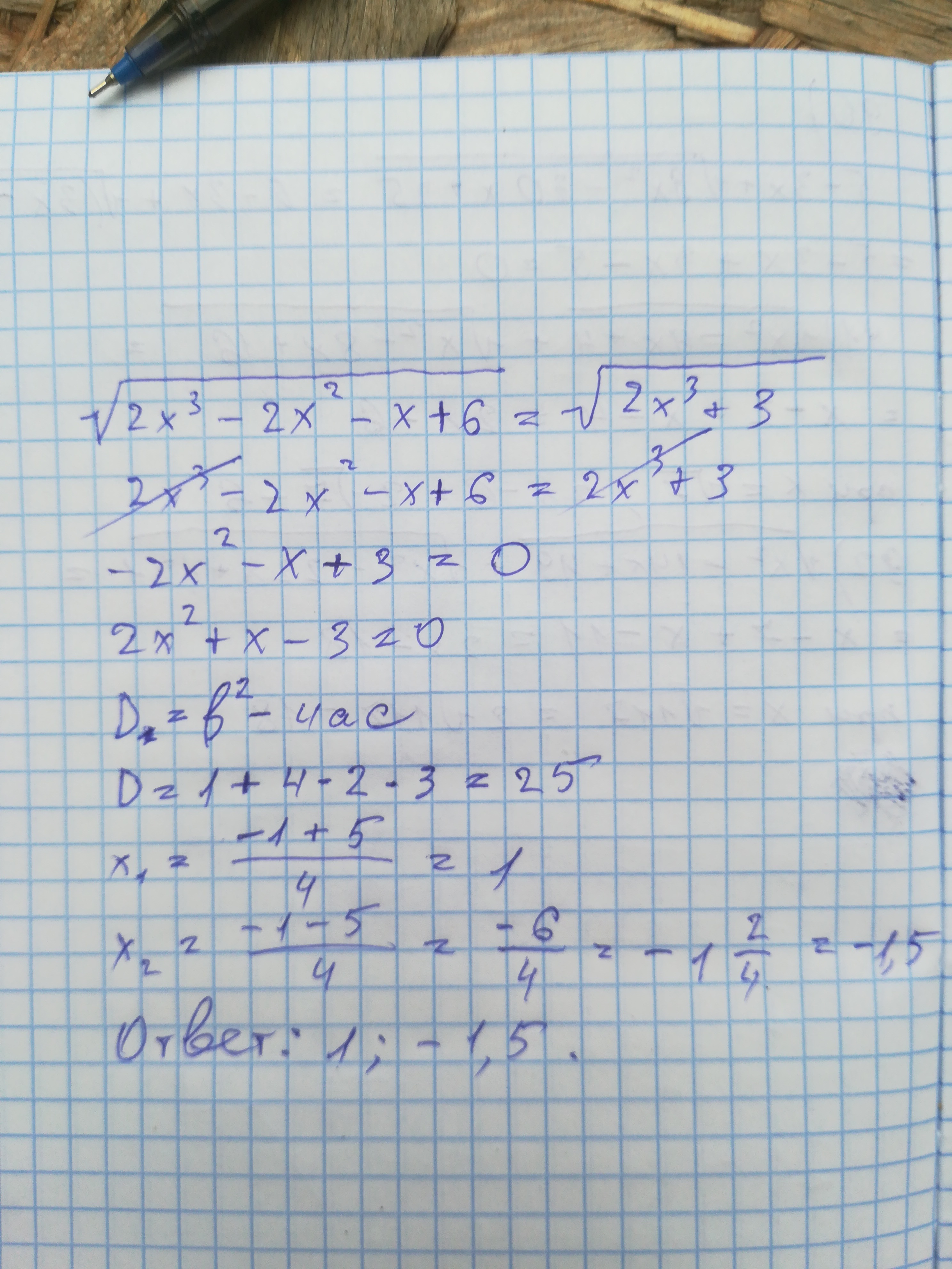 √(2x^3-2x^2-x+6)=√(2x^3+3) ;