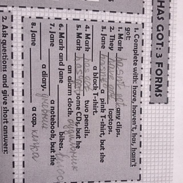 3hasn't got, has got 5has got, hasn't got 6have got 7has got, hasn't got 8has got