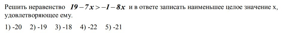 -7x+8x>-1-19; x>-20. Ответ: ( -20: +бесконечность) . (-20) не входит в область допустимых значений( неравенство строгое). наименьшее целое значение x, удовлетворяющее неравенству, равно (-19).