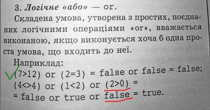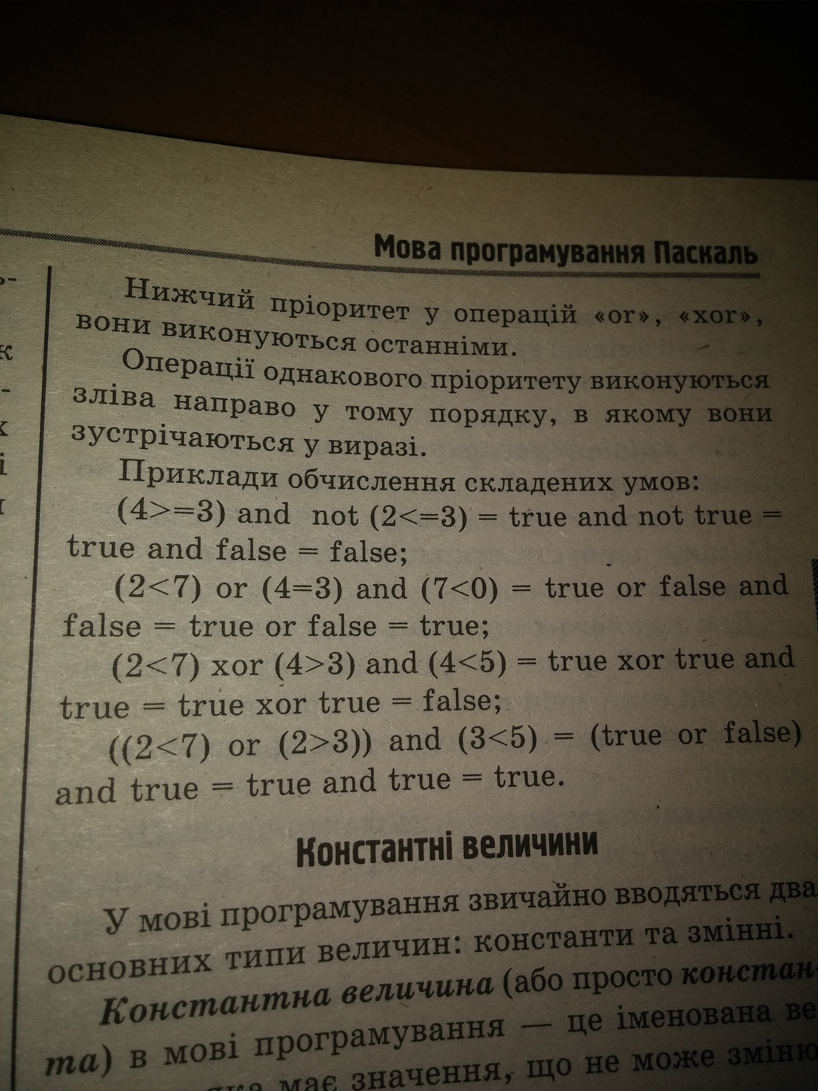 Вопрос про операции отношения с 0 в Паскале возник при прочтении "Велыкий довидник школяра" 5-11 кл. 2003. раздел Информатика 11 класс. Пример логической операции : (4=4) and (1<2) and (2>0) = true and true and false= false. И так в 3-х примерах. Еще (7< 0) = false . Тройная опечатка? или правила математики здесь не действуют? Тип данных числовой вроде-бы или нет? нигде не могу найти ответ на этот вопрос. Вопрос : (2>0) это истина или ложь?