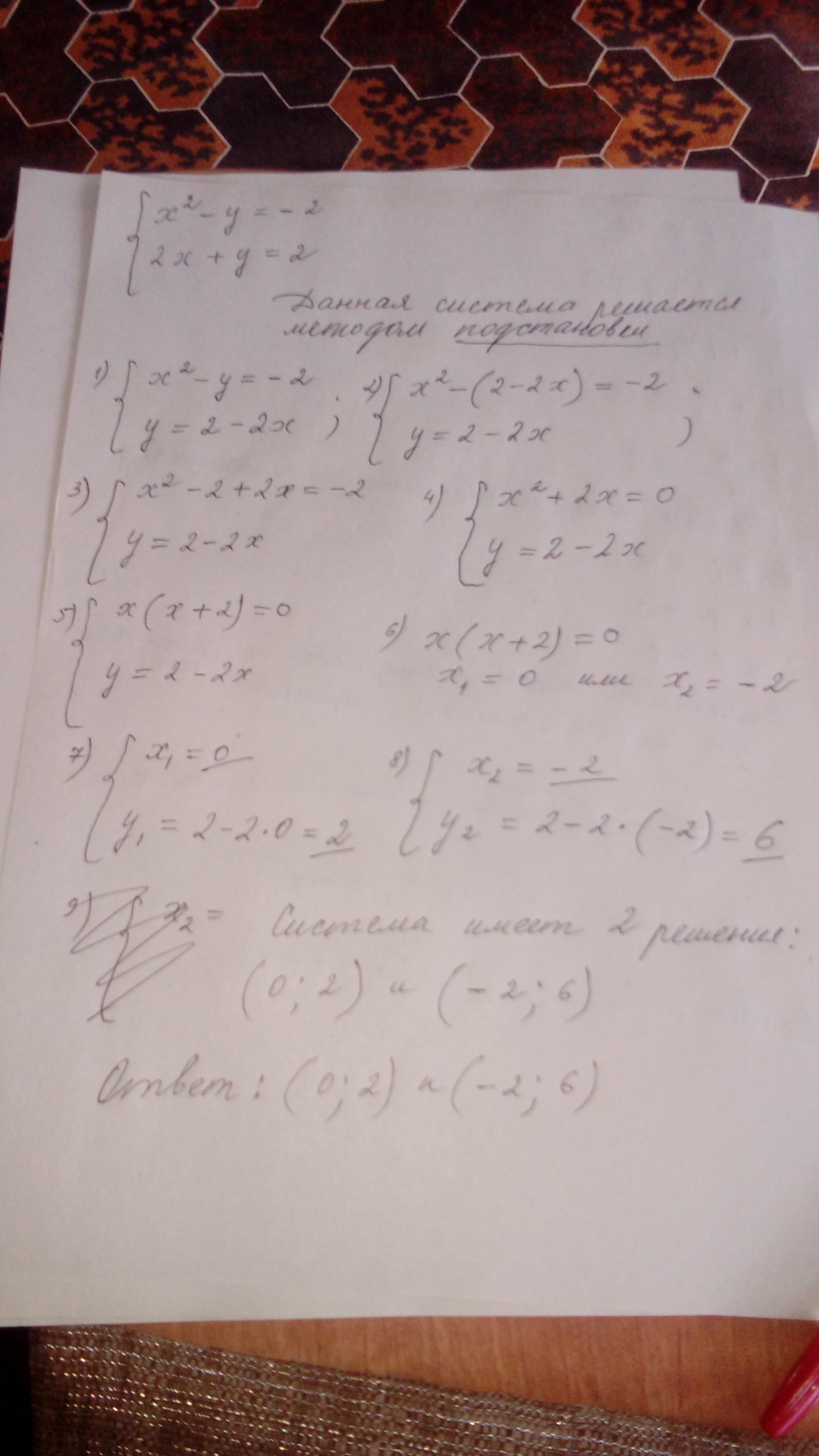 Данная система решается методом подстановки. Ответ смотри ниже.