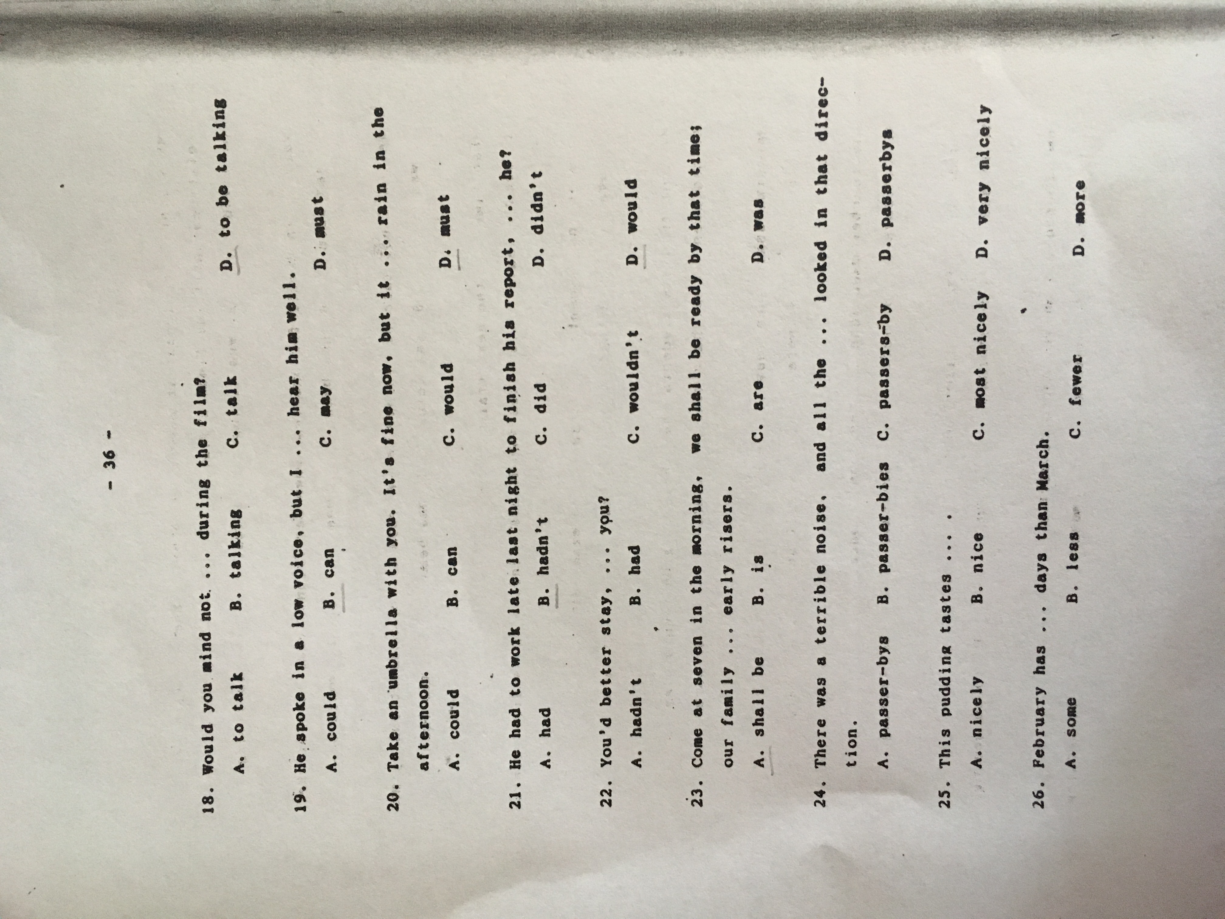 18B 19A 20D 21D 22D 23C 24B 25B 26C 27B 28B 29B 30B 31A 32B 33D 34C 35A 36D