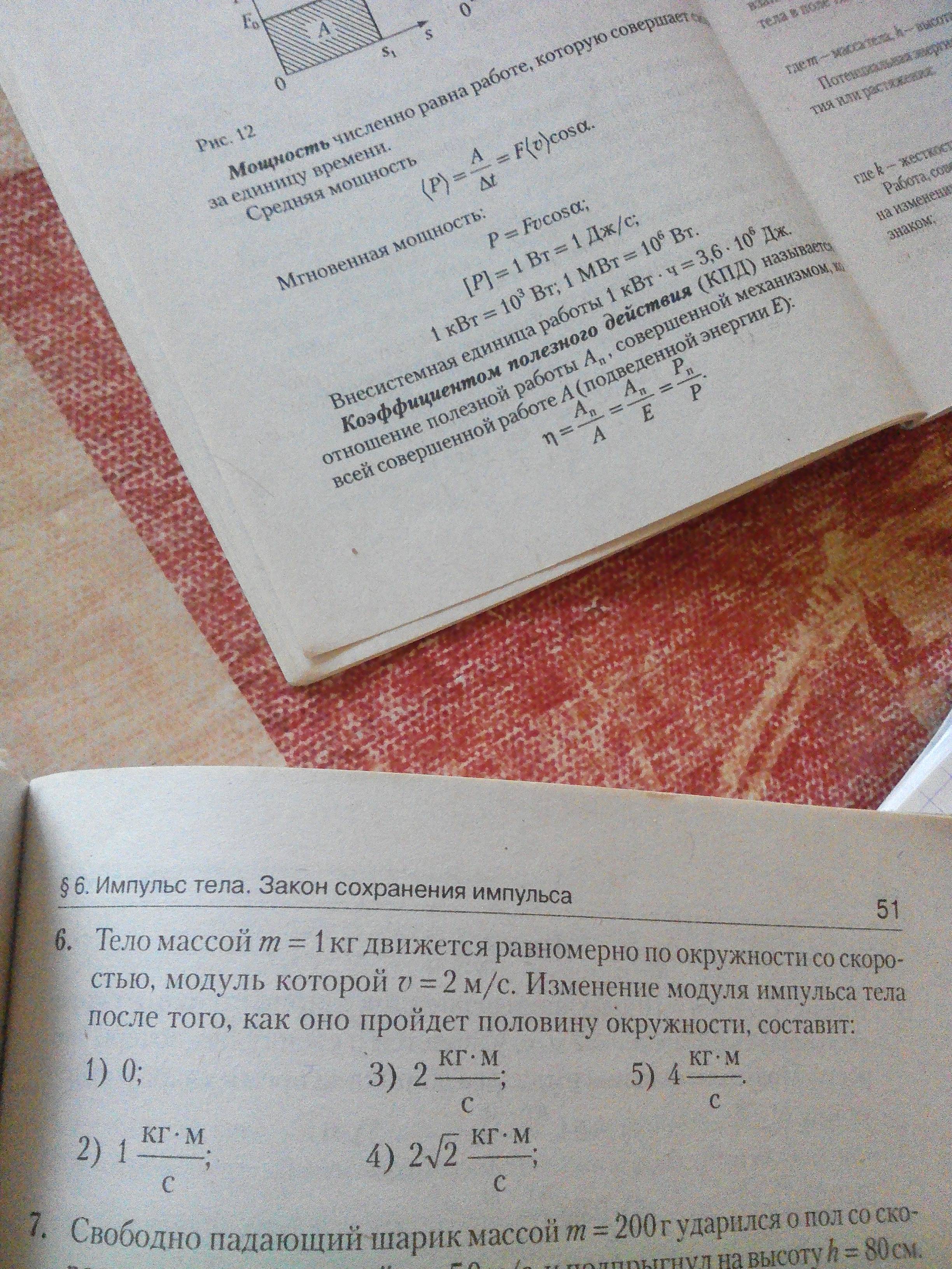Поскольку масса и модуль скорости тела не изменились, модуль импульса тела останется прежним. Соотвтетственно, правильный ответ- 1) 0;