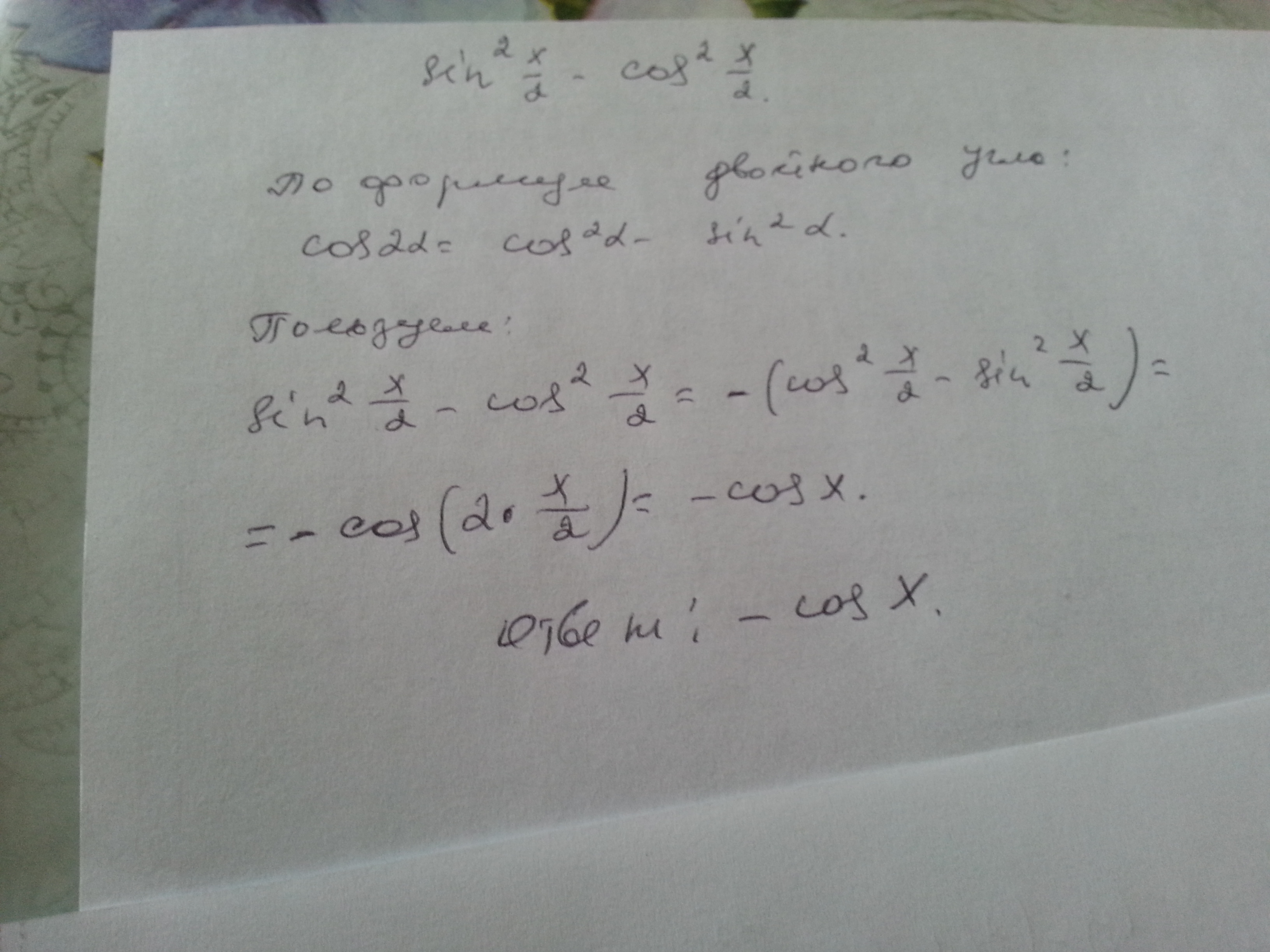 sin²(x/2)-cos²(x/2)=-cosx