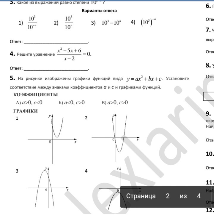 б) a<0,c>0, это третий график, ветви направлены вниз, вершина выше оси ОХ