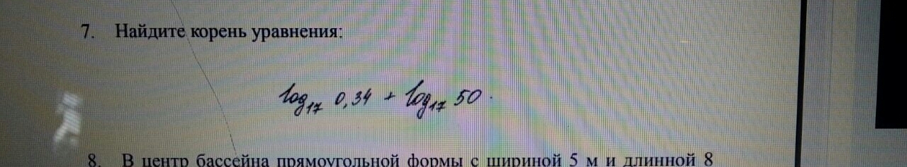 log17(0,34)+log17(50)=log17(0,34*50)=log17(17)=1