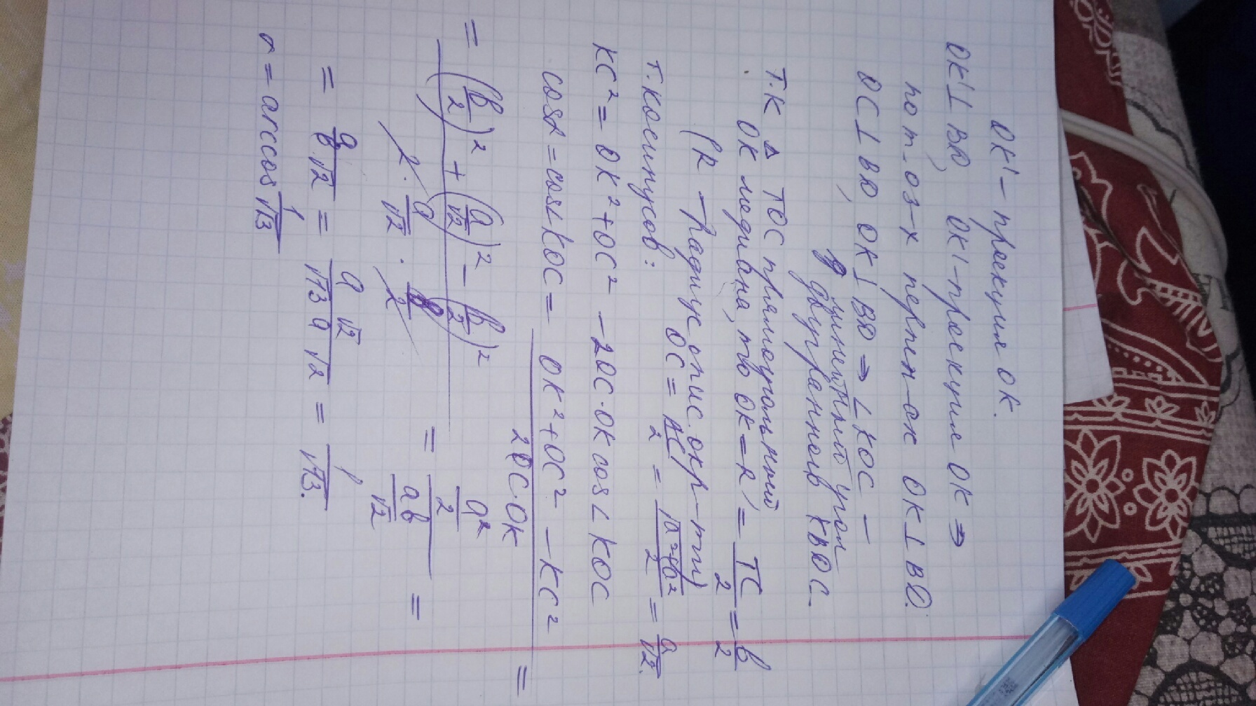 Отношение площади диагонального сечения правильной четырехугольной пирамиды TABCD к площади ее основания равно корню из трёх. Вычислите градусную меру двугранного угла KBDC, где точка K - середина ребра TC.