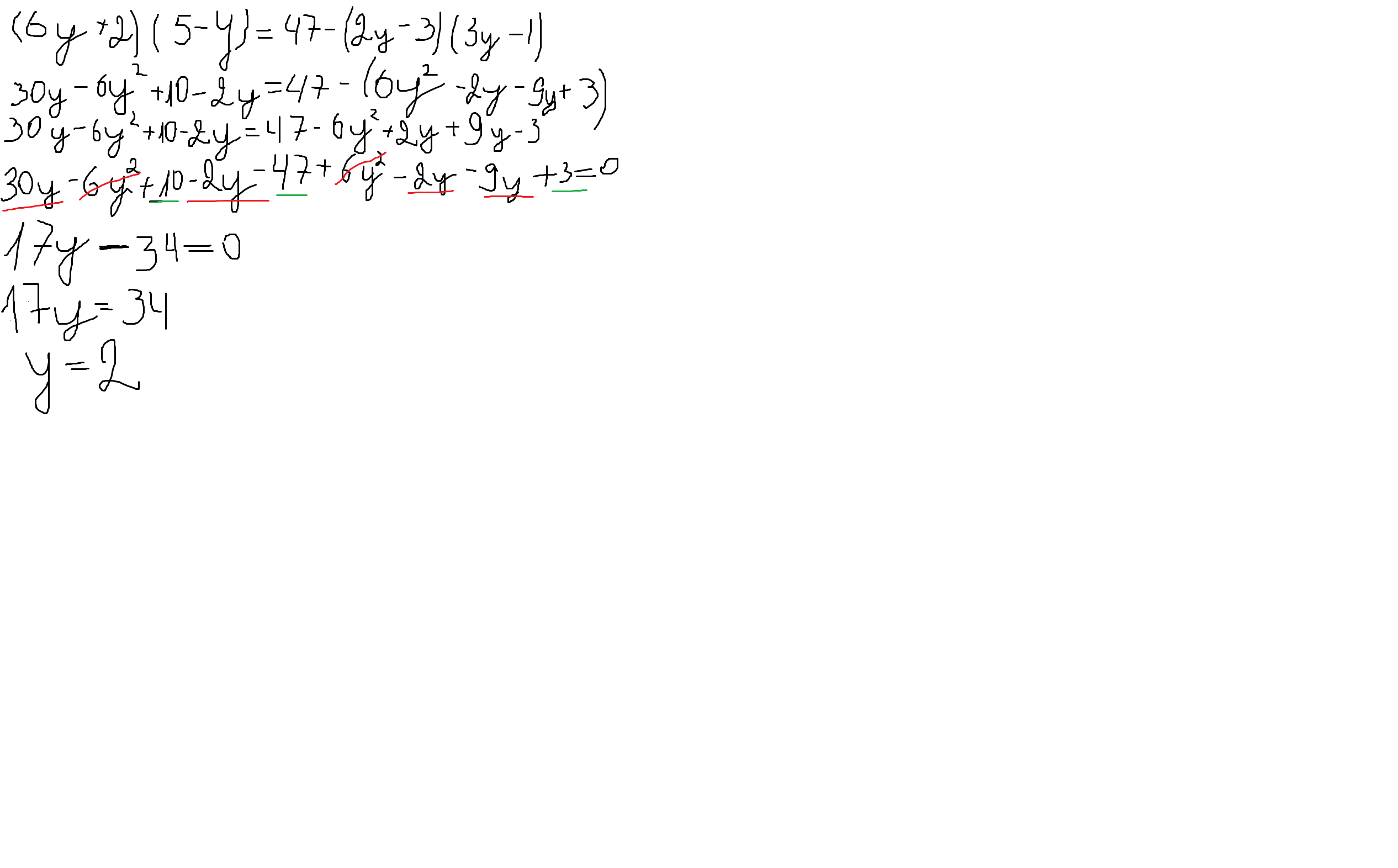 4) (6у+2)(5-у)=47-(2у-3)(3у-1)