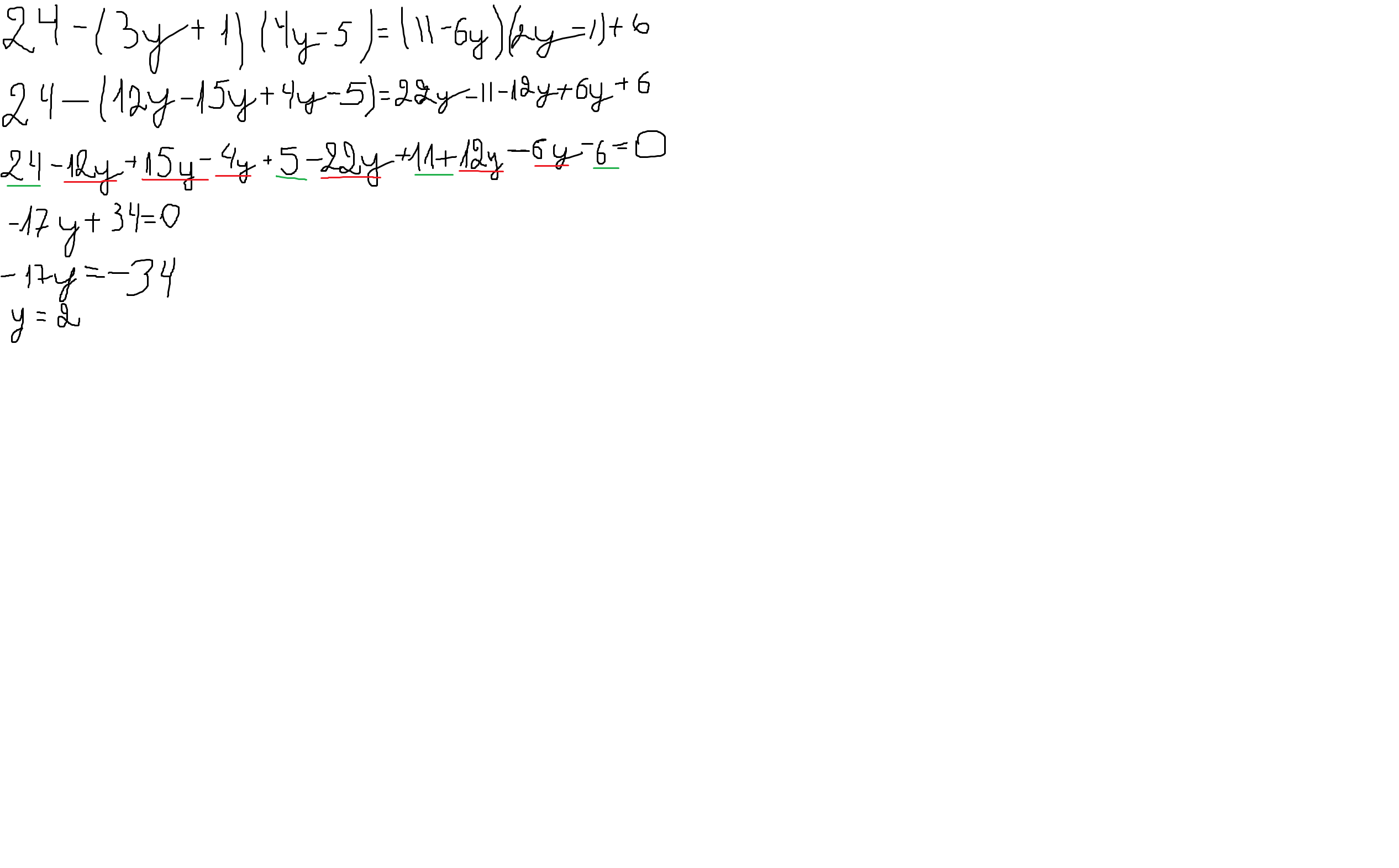 3) 24-(3у+1)(4у-5)=(11-6у)(2у-1)+6