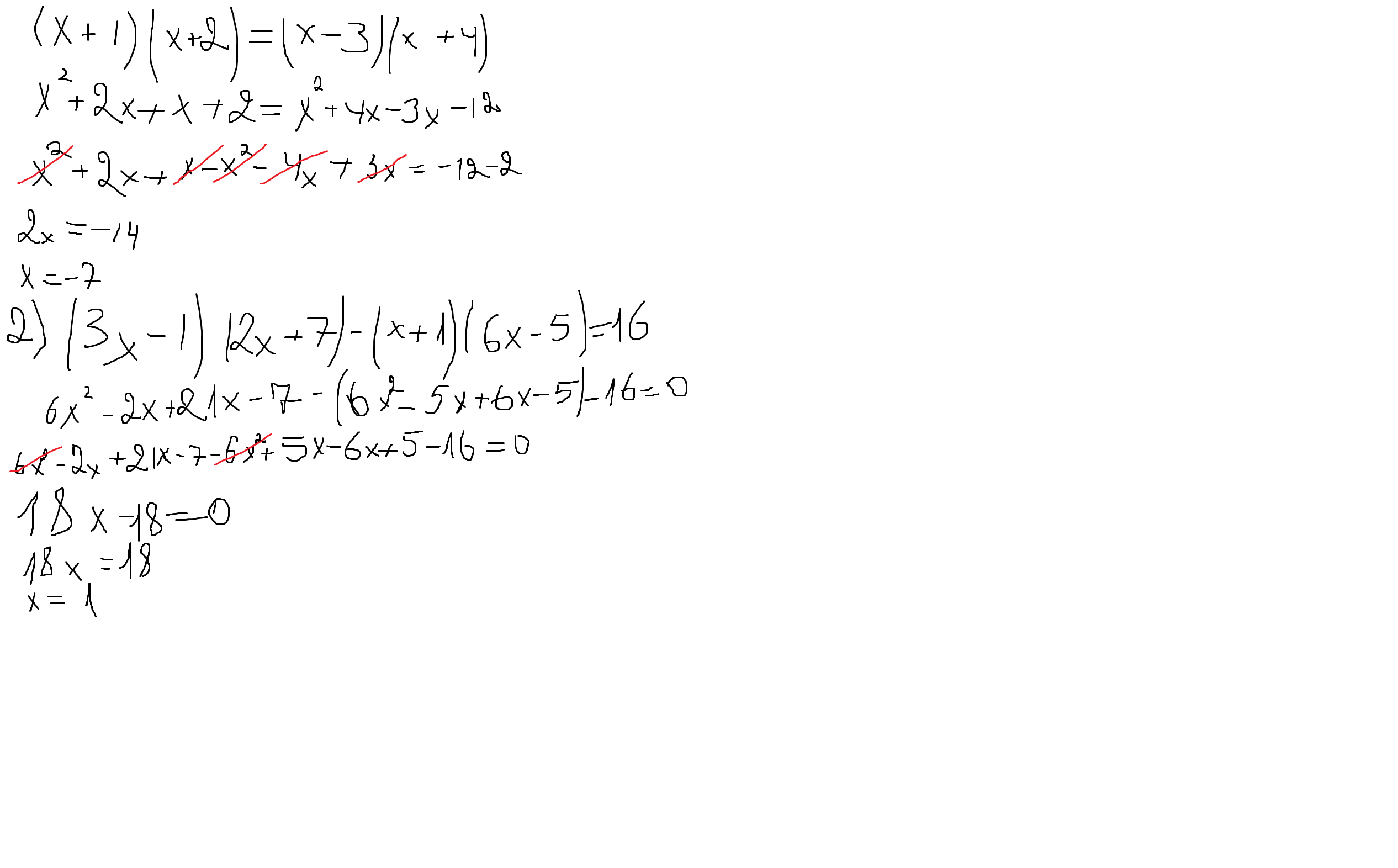 2) (3х-1)(2х+7)-(х+1)(6х-5)=16
