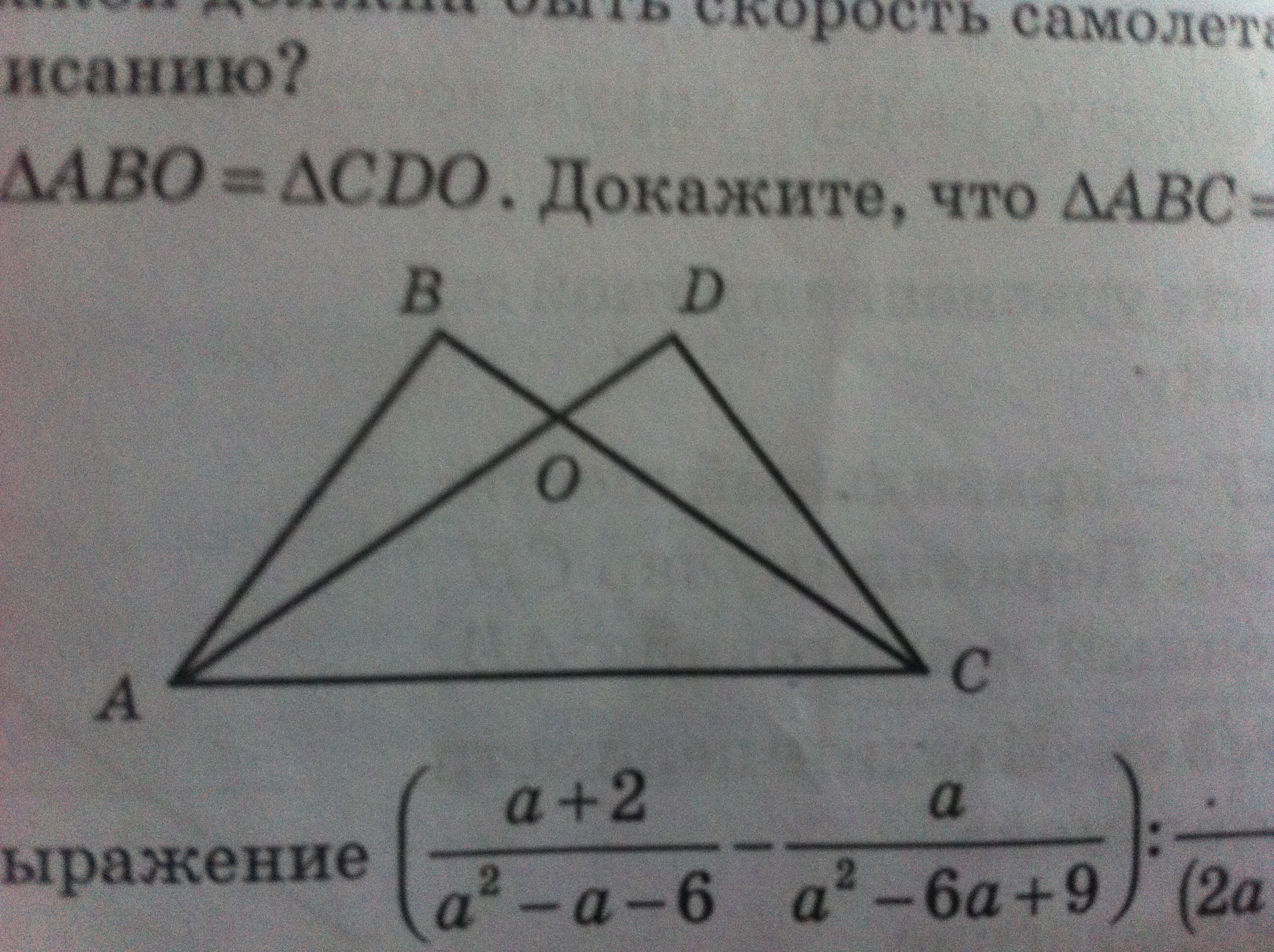 На рисунке треугольникАВО=треугольникуСDO. Докажите, что треугольник АВС=треугольникуАDC.
