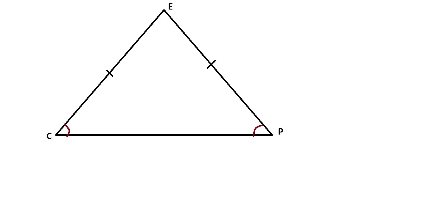 Напротив угла С лежит сторона EP, напротив угла P лежит сторона EC.