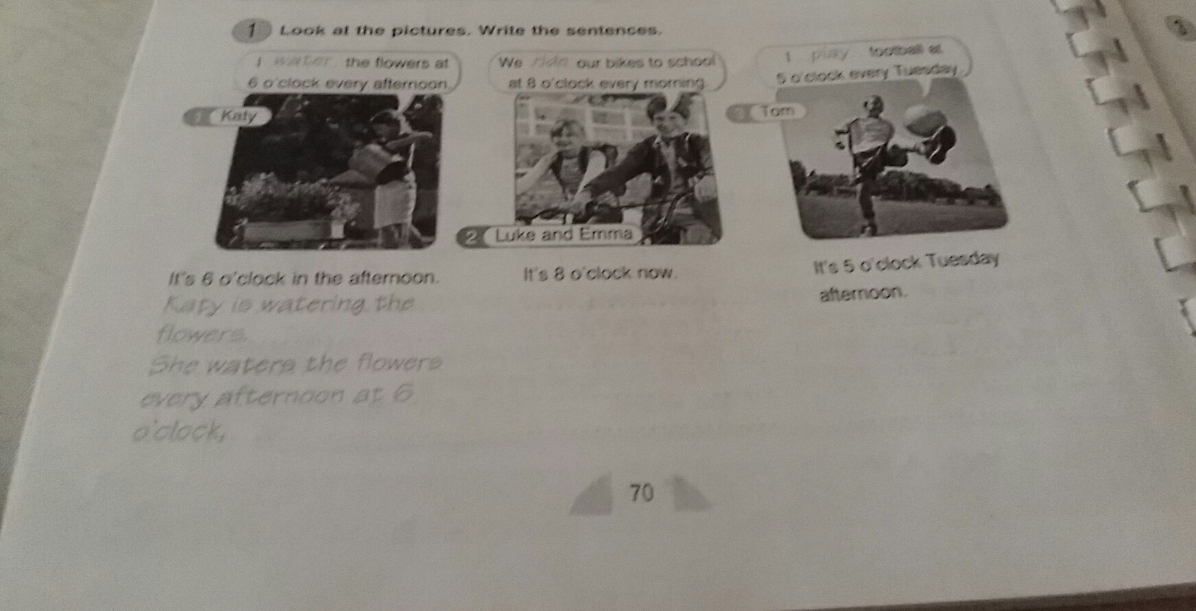 Luke and Emma are ride a bikes.They rides a bikes at 8 o'clock every morning.