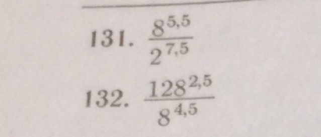 131) 8^(5,5)/2^(7,5)=2^(3*5,5)/2^(7,5)=2^(3*5,5-7,5)=2^(16,5-7,5)=2^9=512
